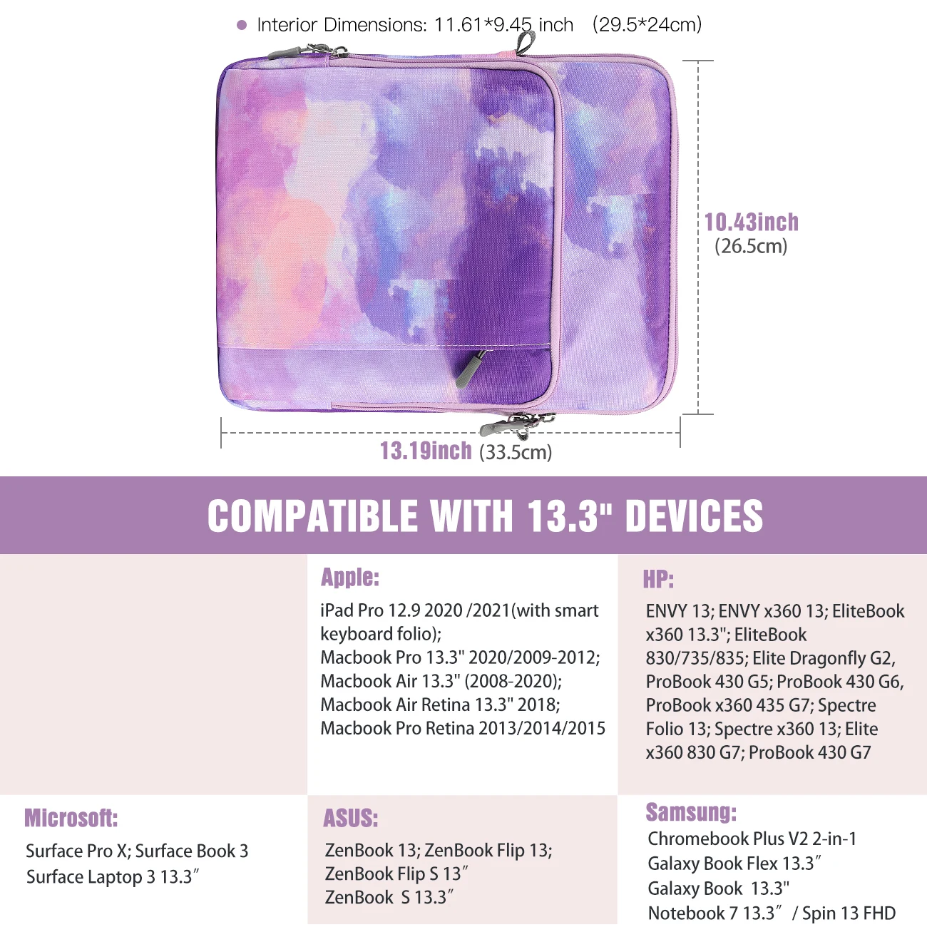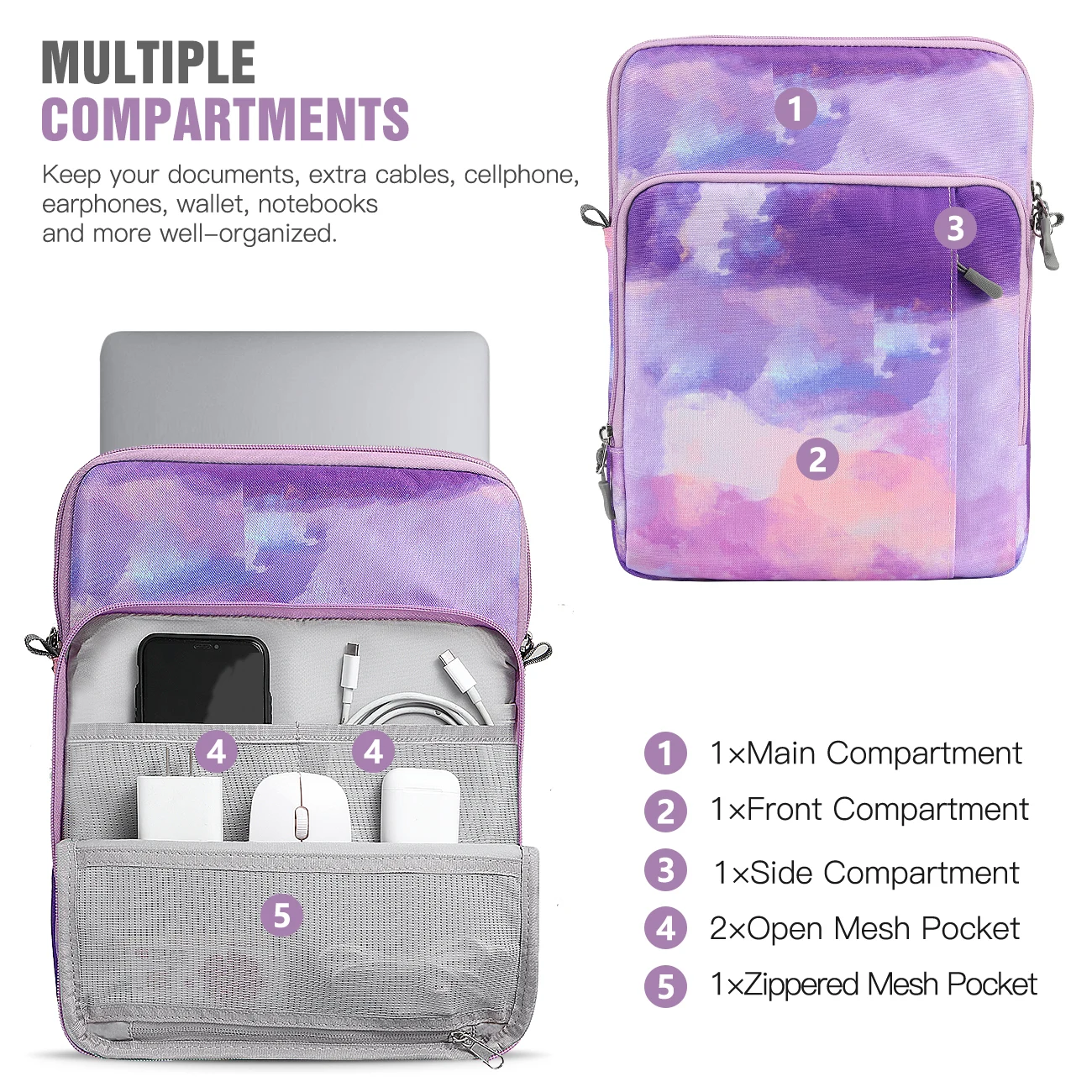 Портативный:С открытым носком, с таблицей размеров 13,19 "x 10,43" x 1,18 "(33,5x26,5x3 см), так и с плечевым ремнем дизайн, удобно, чтобы положить в сумку во время выхода на улицу. Пожалуйста, обратите внимание, что измерьте размер вашего устройства перед покупкой.