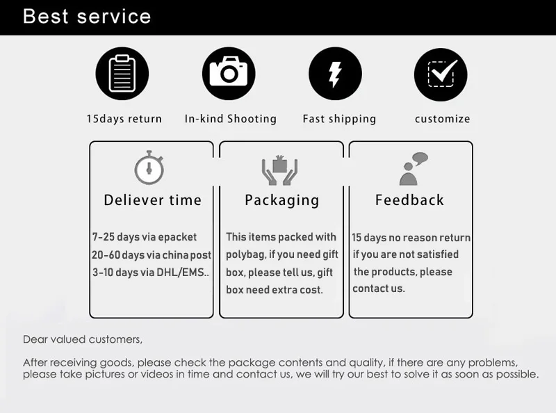 МыЧестные продавцы, мы будем нести ответственность за любую проблему.ЛюбыеВопросы, пожалуйста, свяжитесь с нами.