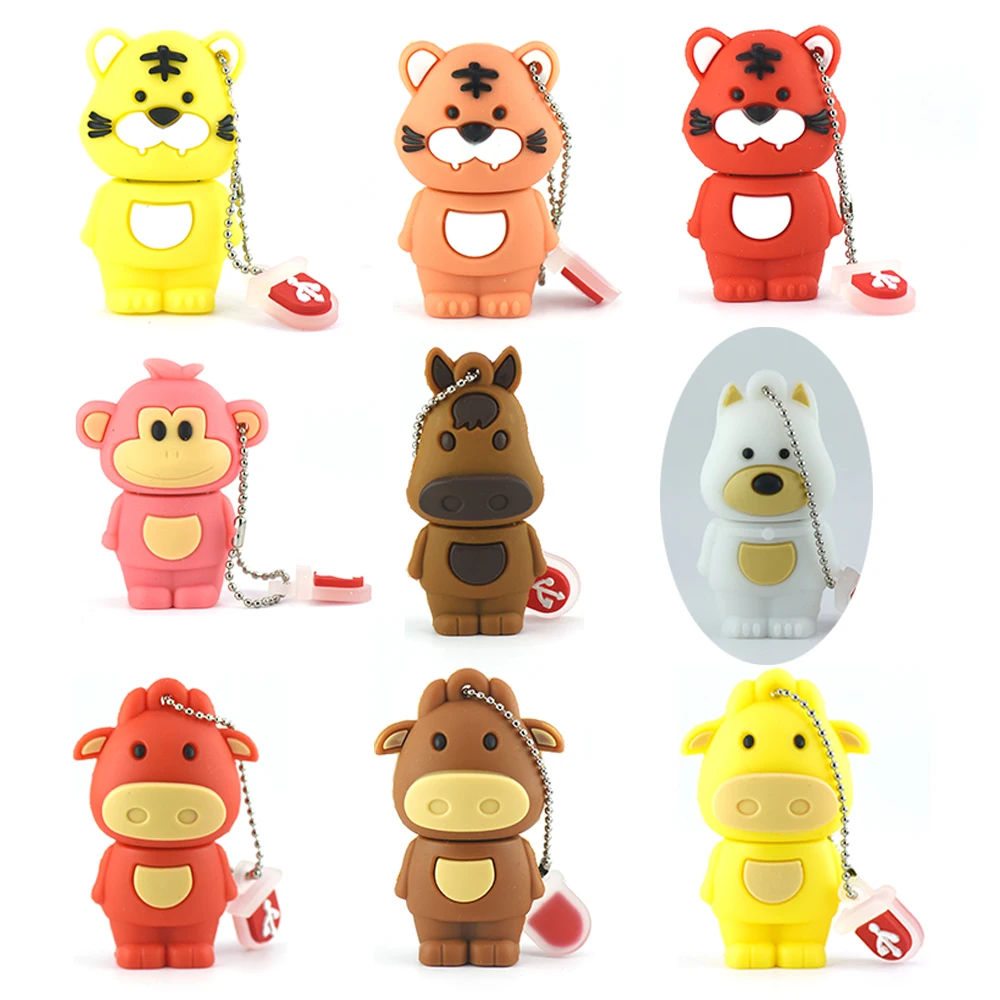 Мультфильм крупного рогатого скота U диск 128 Гб карту флэш-памяти с интерфейсом usb Зверюшка 4 ГБ 8 ГБ оперативной памяти, 16 Гб встроенной памяти Флеш накопитель 32 ГБ высокоскоростной 64GB в виде симпатичной обезьянки нижнее белье memory stick