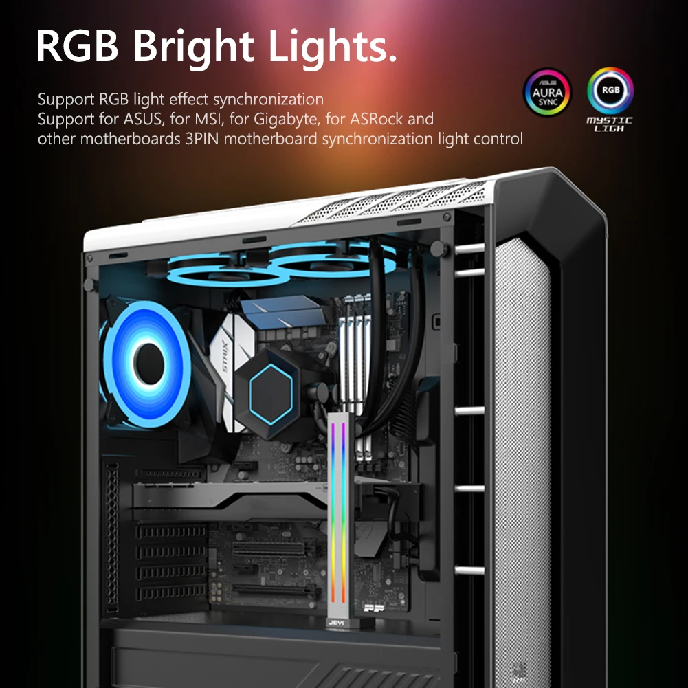 1. Цветной светильник RGB:Поддержка синхронизации эффектов RGB светильник, поддержка ASUS, MSI, Gigabyte, ASRock и других материнских плат, 3pin Материнская плата синхронизация светильник управления
