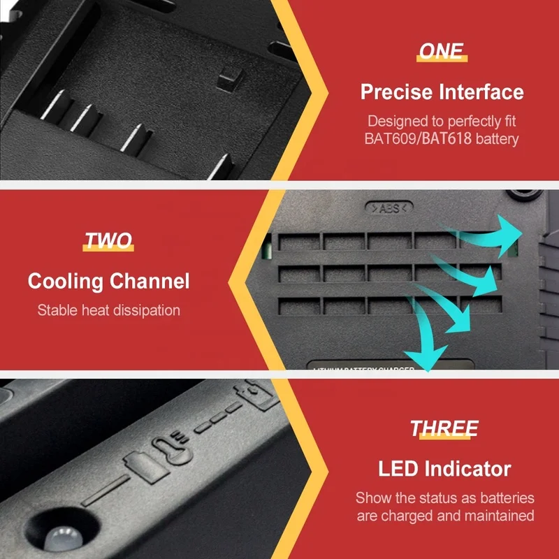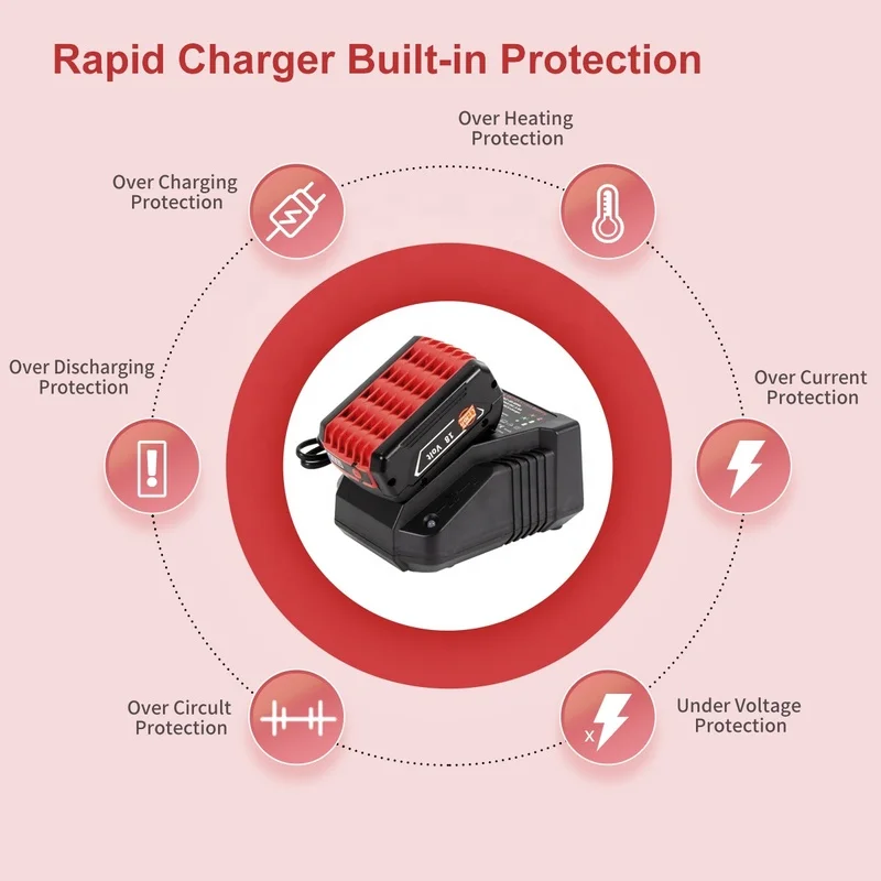 Зарядное устройство имеет встроенную защиту цепи для предотвращения перегрева, короткого замыкания, перезарядки и обнаружения поврежденных батарей.