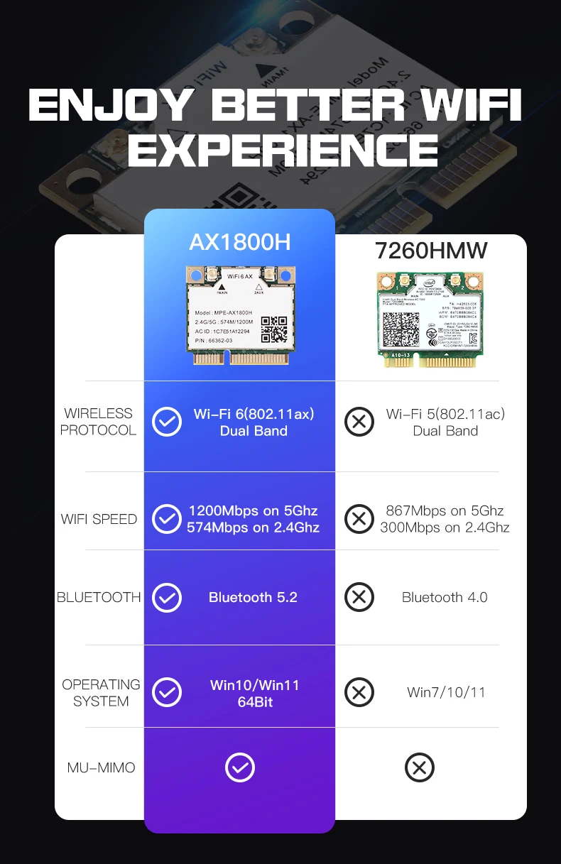Отзывы о Двухдиапазонный Wi-Fi 6 карт 1800 Мбит/с для мини-адаптера pcie Bluetooth 5 2 беспроводной