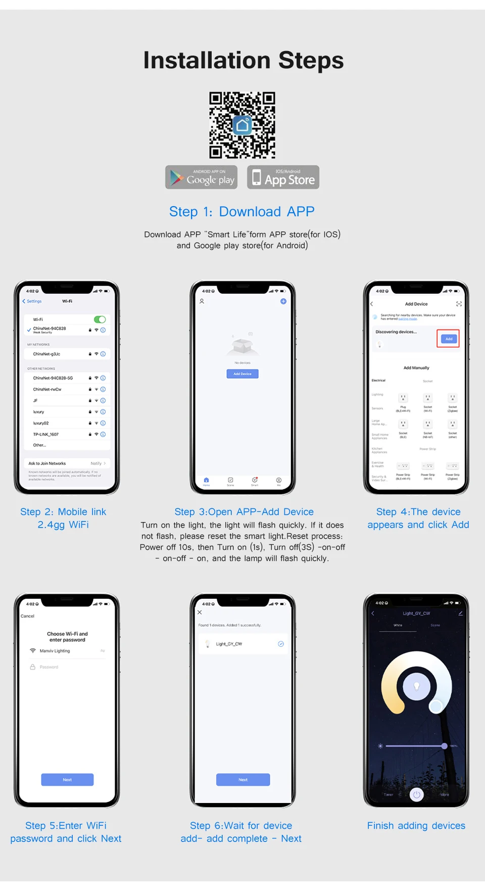 1) приложение: Tuya/приложение Smart life (соединение с 2,4 ГГц Wi-Fi)