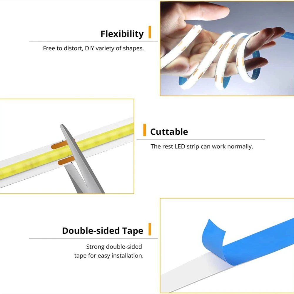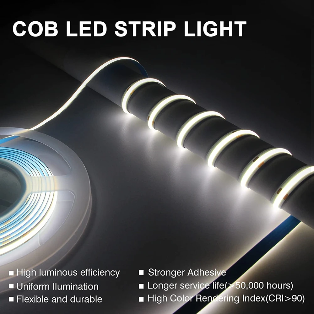 COB светодиодный ленточный светильник DC24V/12V LED высокой плотности гибкий FOB COB 8 мм Ширина высокая яркая светодиодная лента RA90 теплый белый Природа холодный белый