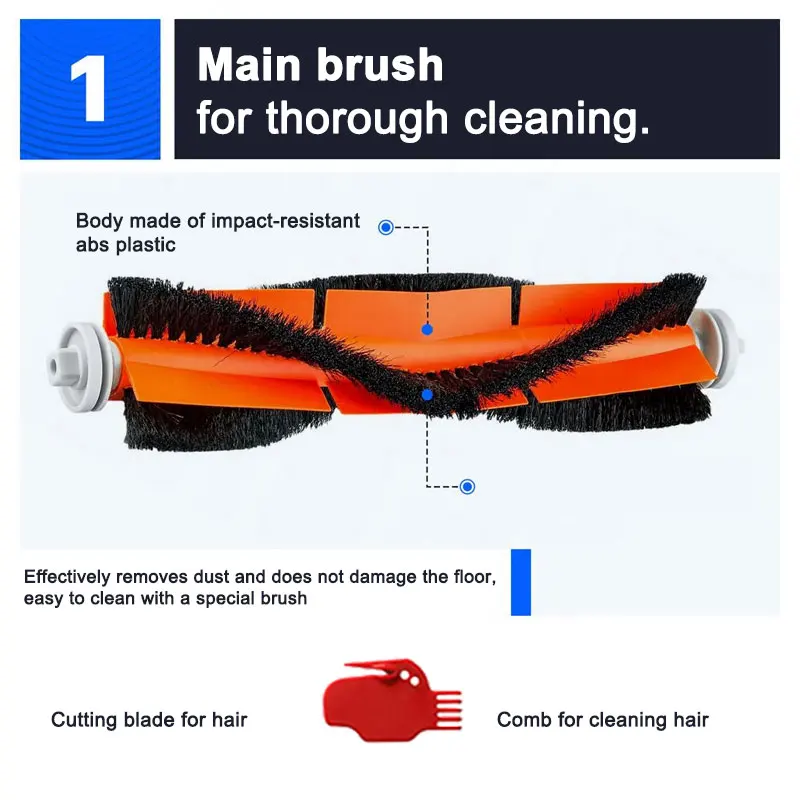 Основная кисть: рекомендуется заменить 6-12 месяцев. Практичная прокатная щетка для роботизированной вакуумной очистки Xiaomi, Глубокая очистка.