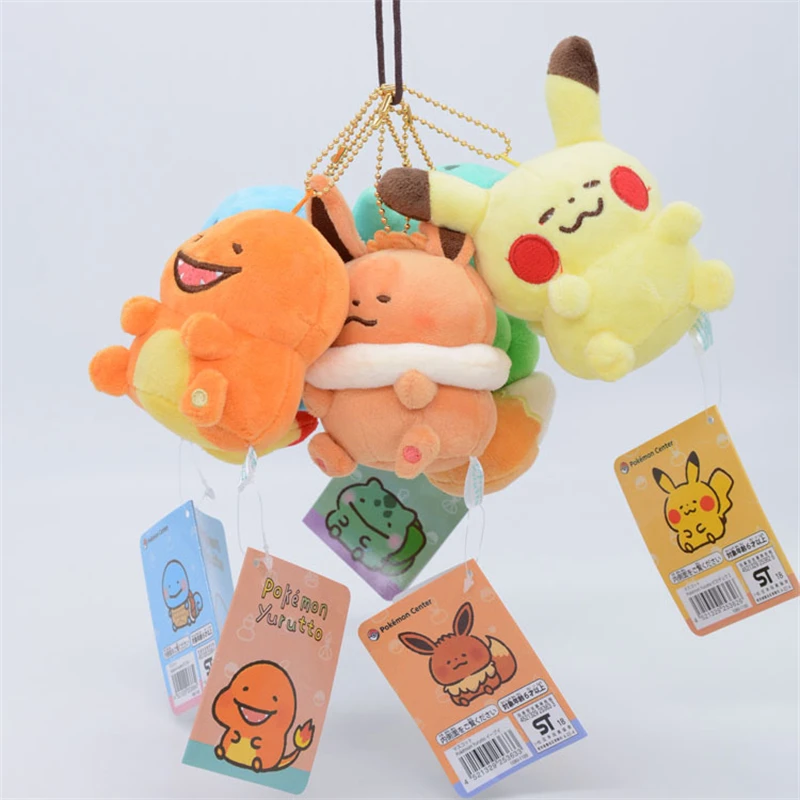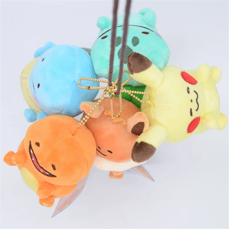 Отзывы о 30Pcs/Lot Pikachu Eevee Charmander Squirtle Bulbasaur Plush Doll Backpack Keychain Small Pendant For Children Kids Gift Toy - купить по