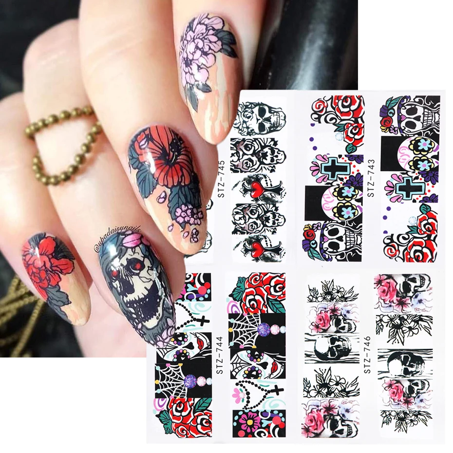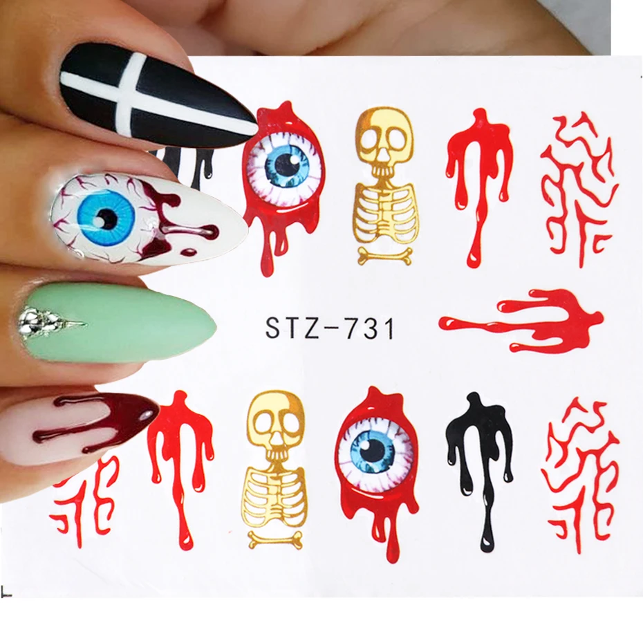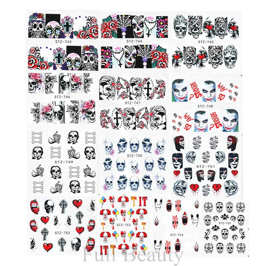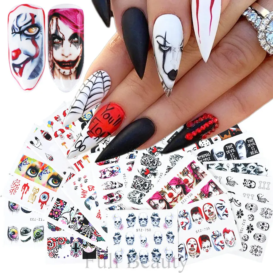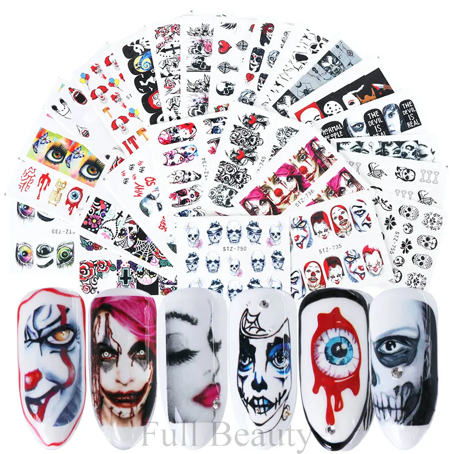 Отзывы о 25pcs/Set Halloween Water Decals Nail Art Stickers Skull Clown Ghost Manicure Decoration Transfer Slider STZ731-755 - купить по