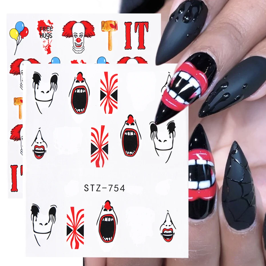 Дизайн: Хэллоуин водяные наклейки для ногтей художественные наклейки Череп Клоун призрак Маникюр украшение переводные наклейки для ногтей
