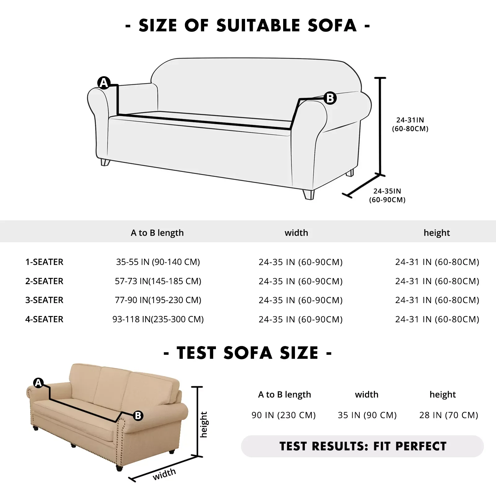 Пожалуйста, тщательно измерьте размер вашего дивана. Также учитывайте подлокотники. Если вы не принимаете подлокотники во внимание, чехол для дивана может не поместиться на вашем диване.