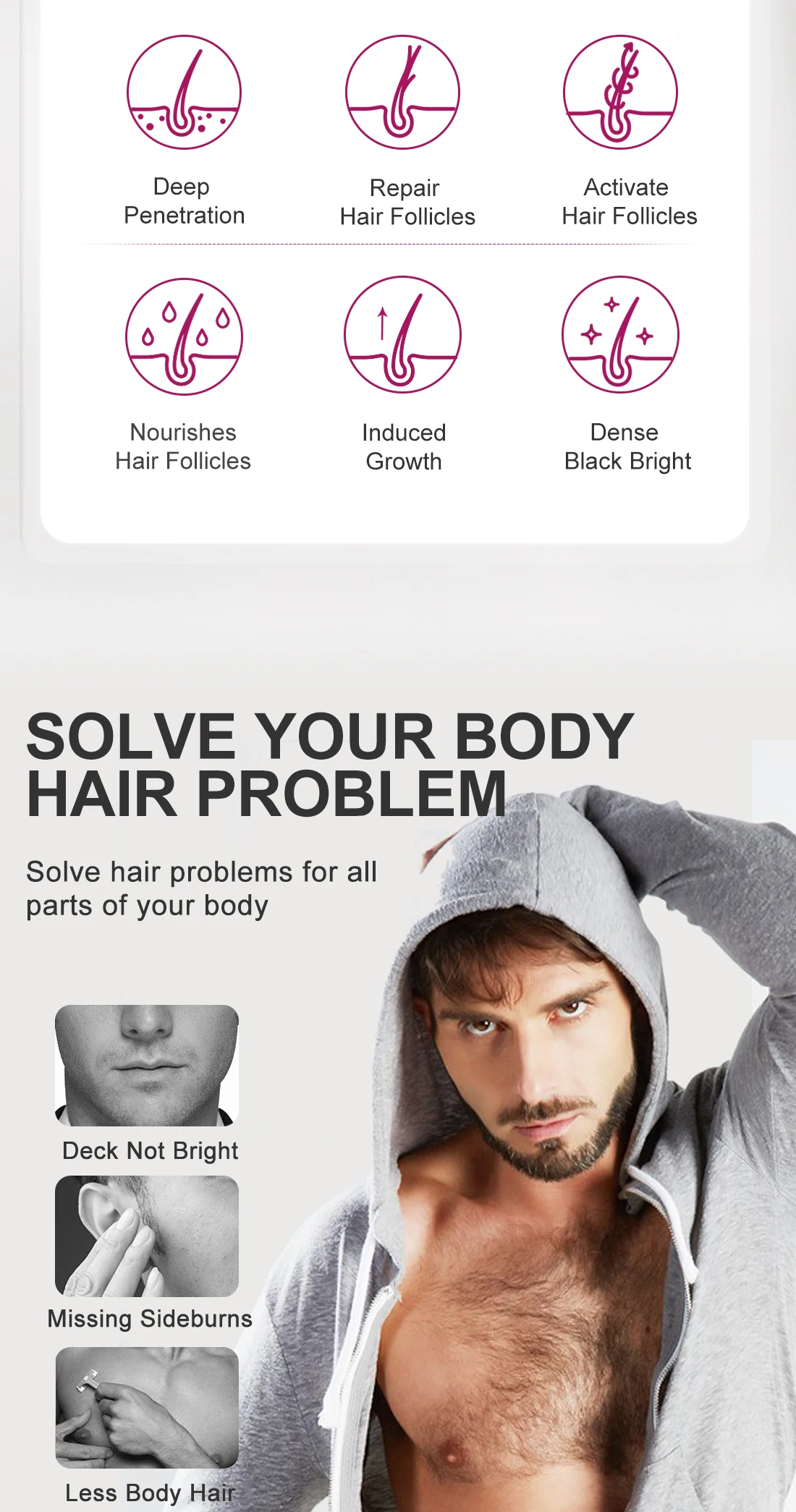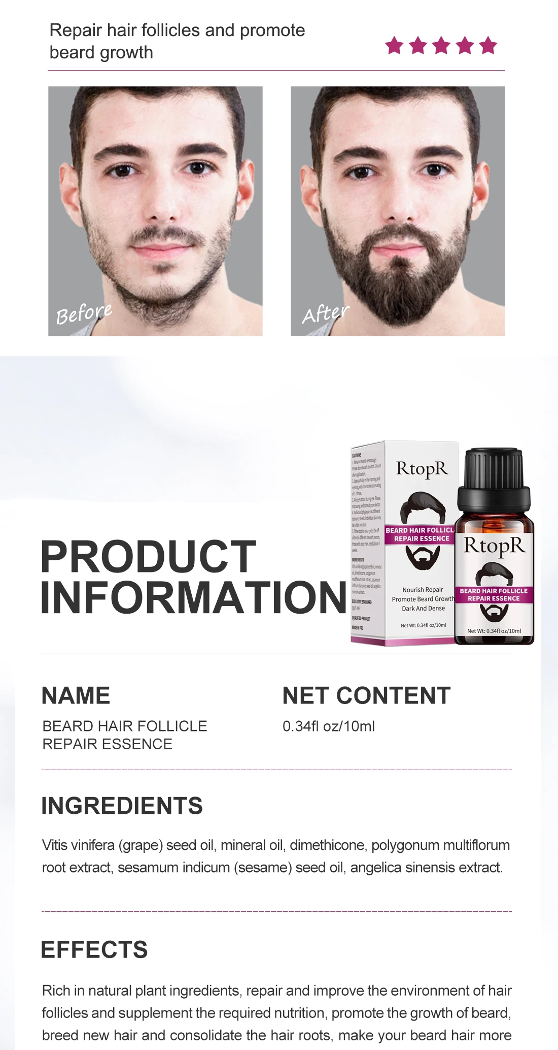 Богатые натуральными растительными ингредиентами, восстанавливают и улучшают окружающую среду волосяных фолликулов и дополняют необходимое питание, способствуют росту бороды, размножают новые волосы и укрепляют корни волос, сделайте волосы с бородой все более густыми, здоровыми, черными и блестящими, пришлите различные очарования.