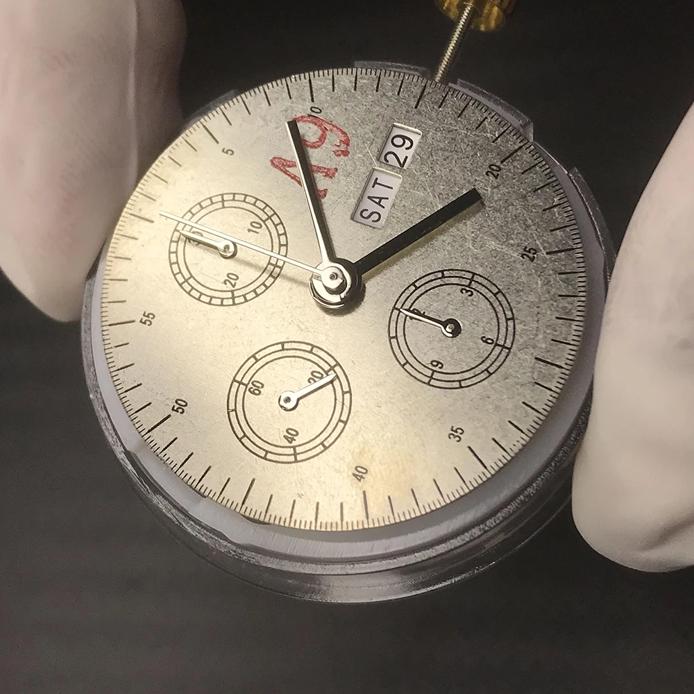 Китай клон ETA 7750 Автоматический хронограф часовой механизм 12/6/9 Subdials с днем/датой в 3 часах 25 драгоценностей заменить механизм