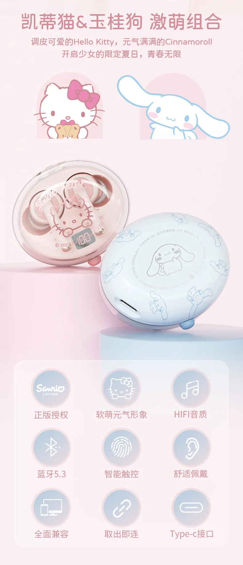 Отзывы о Sanrio Hellokitty Cinnamoroll Kawaii беспроводные Bluetooth наушники 5 0 Tws перезаряжаемые