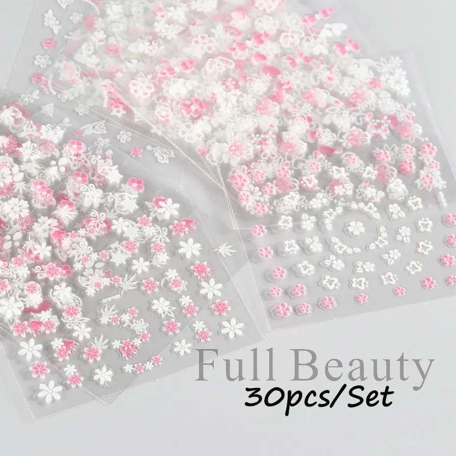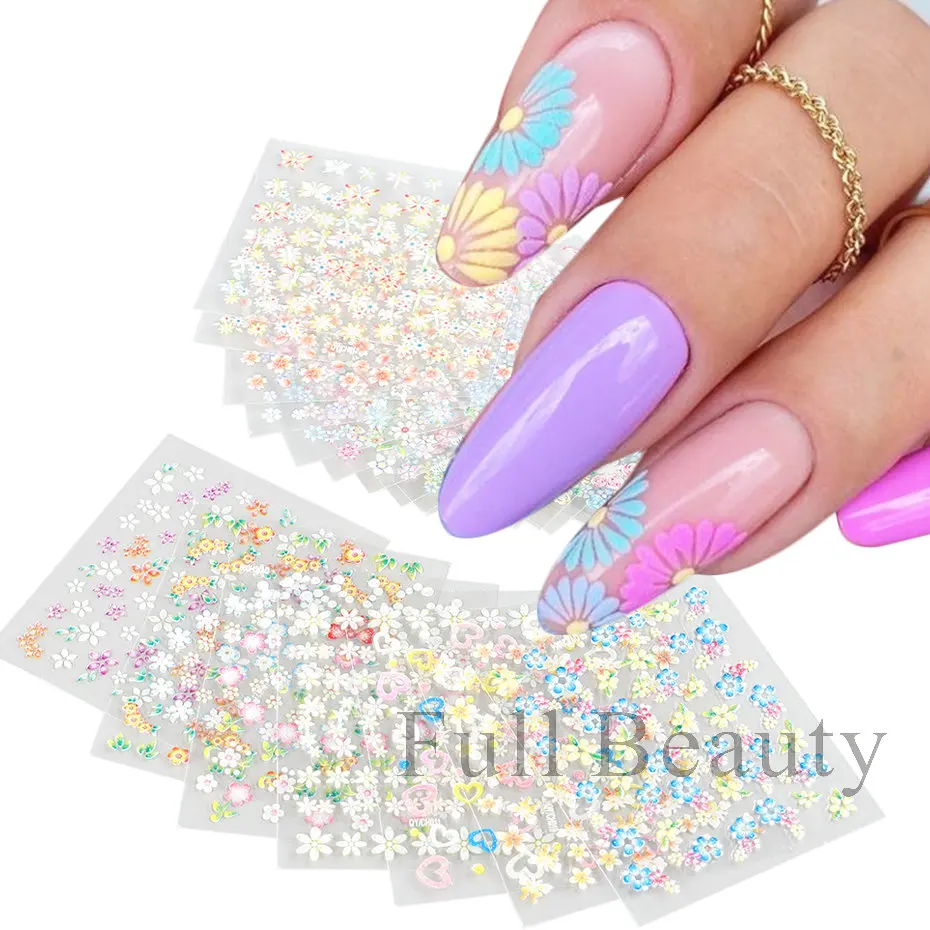 Отзывы о 30pcs 3D Floral Designs Nail Stickers Set Daisy Flower Abstract Butterfly Leaves Image Series Decal Slider Decoration - купить по