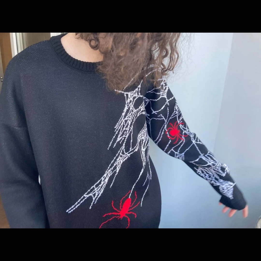 Отзывы о Мужские Пуловеры свитеры в полоску с графическим пауком женская вязаная уличная