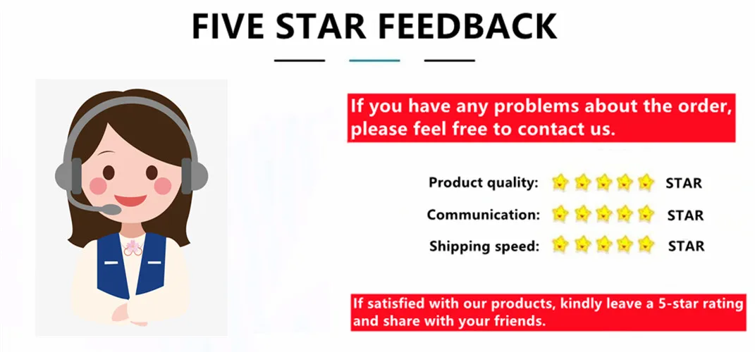 Мы поддерживаем высокий стандарт качества и стремимся достичь 100% удовлетворенности клиентов! Отзывы очень важны, мы просим Вас немедленно связаться с нами, прежде чем давать нам нейтральные или негативные отзывы, чтобы мы могли решить вашу проблему удовлетворительно.