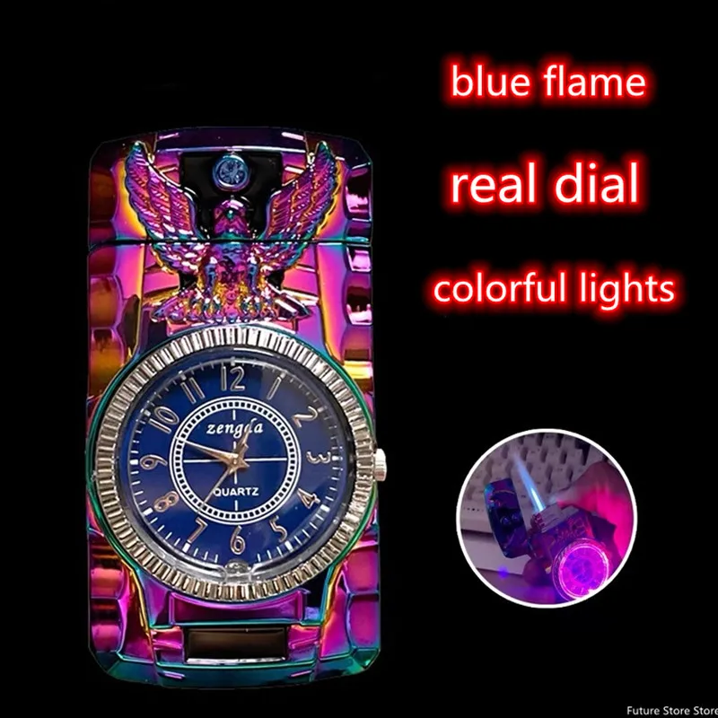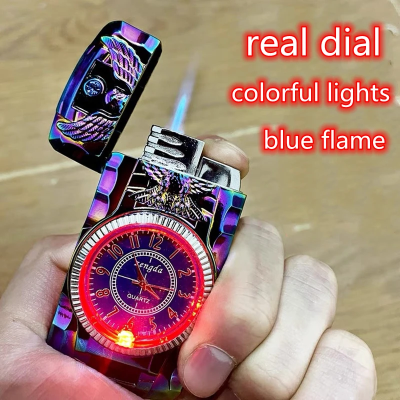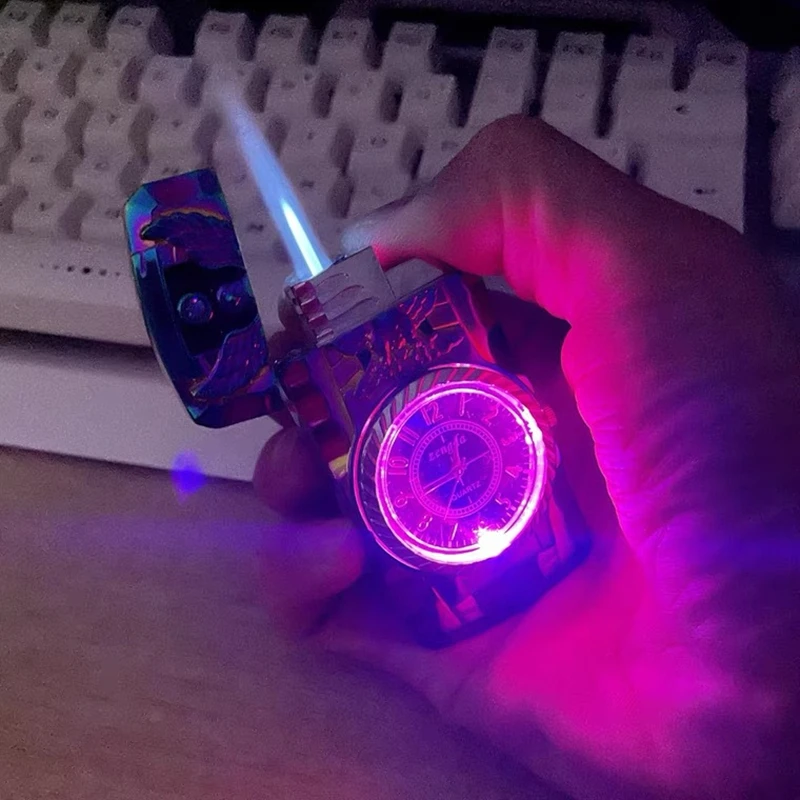 Роскошные золотые часы Jet зажигалка фонарь турбо газовая Зажигалка Ветрозащитная сигарета металлическая зажигалка Led надутый бензин Бутан