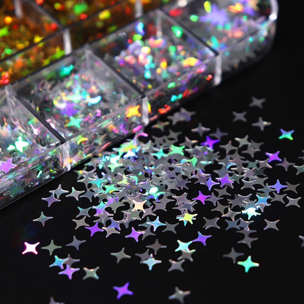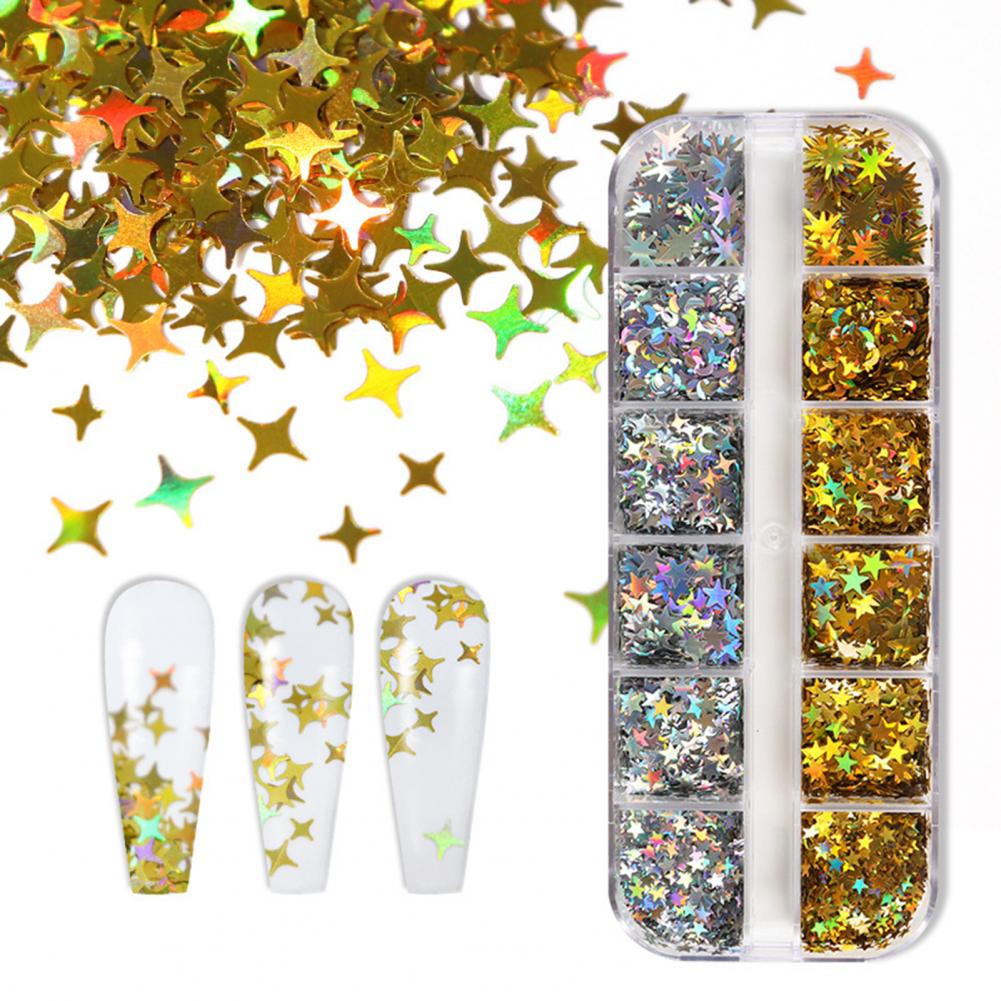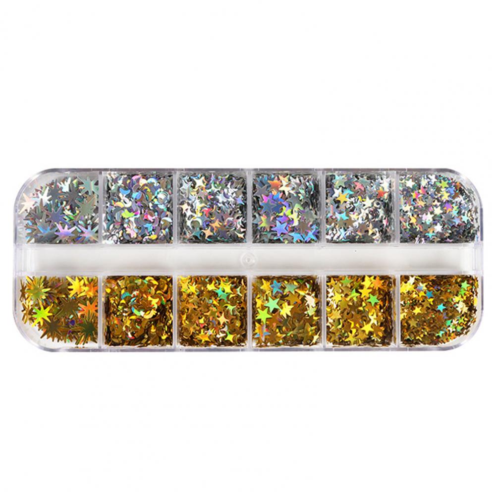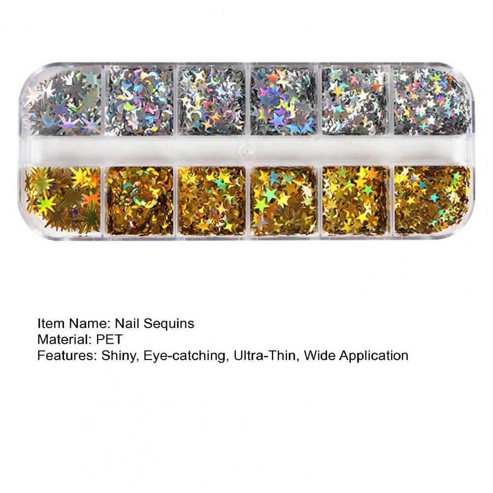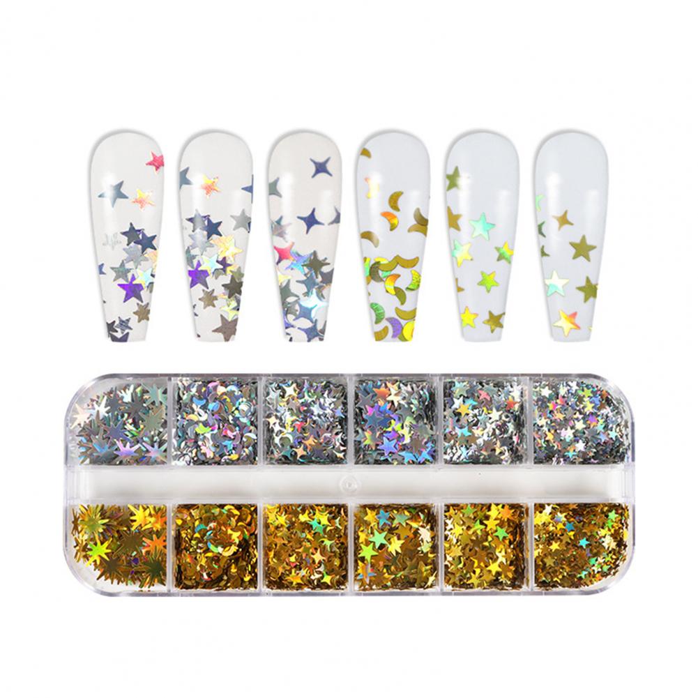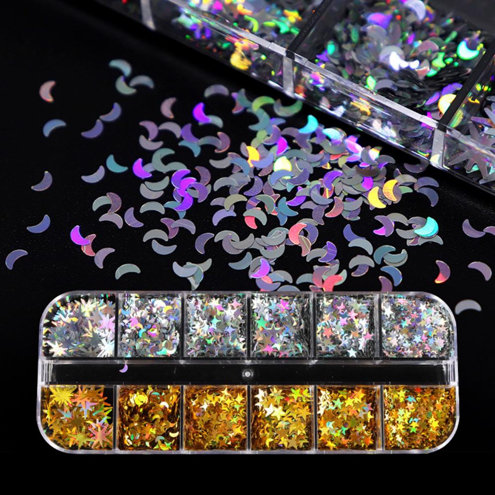 1 коробка, блестки для ногтей, сверкающая креативная форма, блестящий визуальный эффект, ультра-тонкий, не выцветает, 12 сеток, Звездный лунный стиль, блестящие хлопья, украшение для маникюрного салона