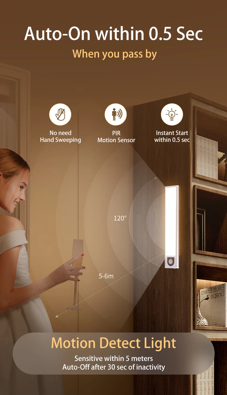 Светодиодная подсветка под шкаф PIR датчик движения Ночной свет человека обнаруживает бесступенчатое затемнение яркость Регулируемый Уход за глазами умное освещение кухонный шкаф гардероб Прикроватный ящик витрина
