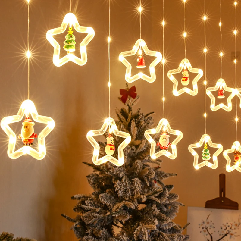 Светодиодная Рождественская занавеска с пентаграммой, украшение, сказочные огни, снеговик, Санта, звезды, ледяная полоса, свадебный новогодний декор, Подарочная лампа