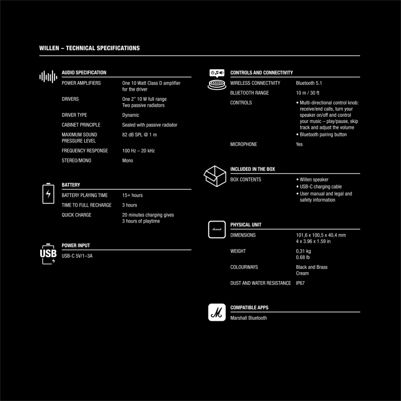 Отзывы о Портативный Bluetooth-динамик Marshall Willen водонепроницаемый беспроводной домашний и