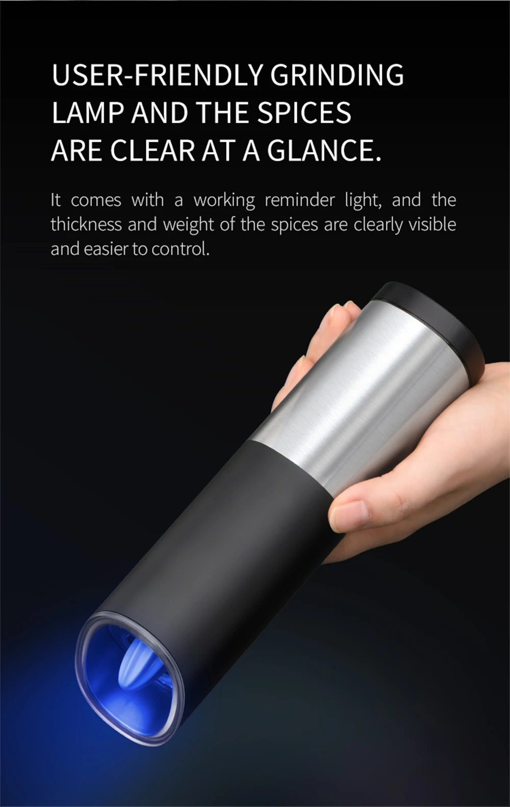 Электрический перец мельница поставляется с рабочей напоминание светильник.