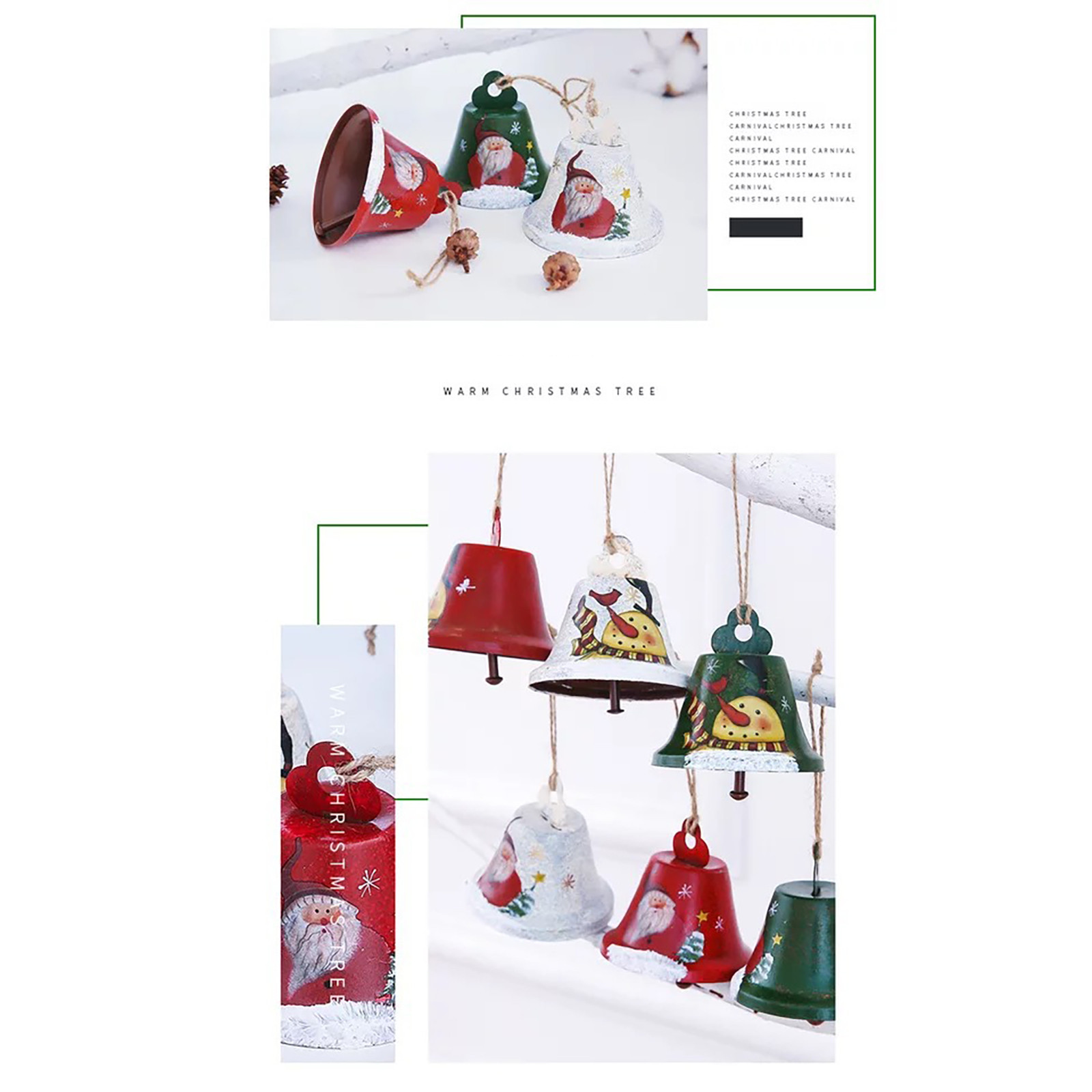 - Декоративные колокольчики могут быть украшены рождественскими елками, дверями, стенами, каминами и где угодно, а также применяются к Рождественским венкам, люстрам, подарочной упаковке и т. д., привнесите ваш дом в рождественскую атмосферу.