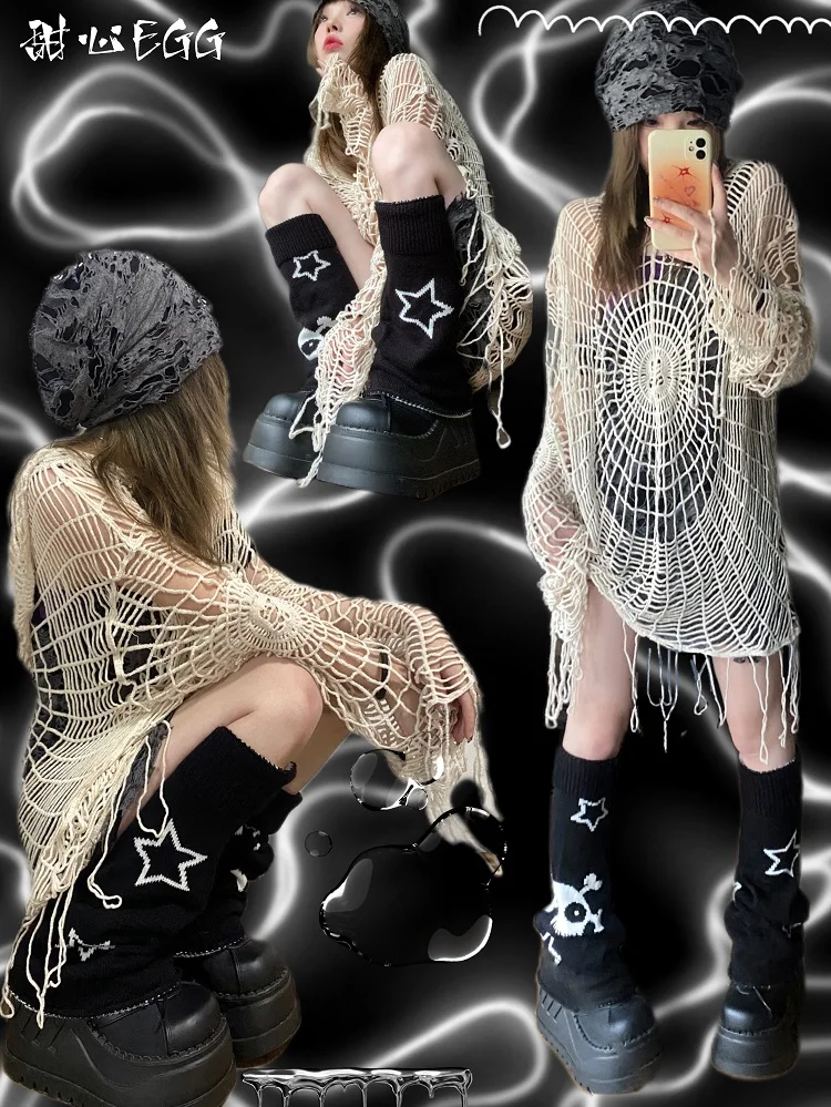Отзывы о Mikumn Харадзюку Y2k черно-белая вязаная двухсторонняя одежда со звездами черепами
