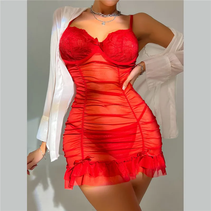 Сексуальная пижама платье подтяжки кружева пижамы Женская сексуальная ночная рубашка