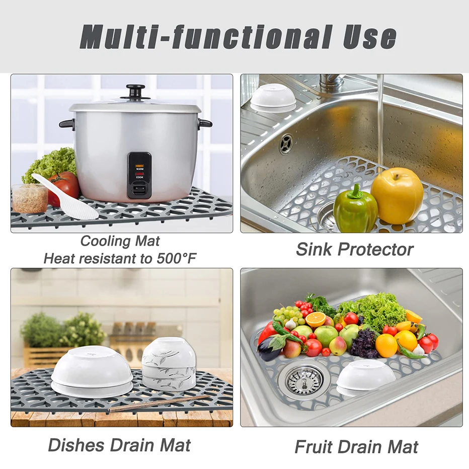 4. Термостойкие-в отличие от моющих ковриков, изготовленных из пластика или ПВХ материалов, наш протектор дренажа кухонной раковины, если он прочный и термостойкий, что он может обрабатывать температуры до 500F. Чтобы вы могли положить горячую еду или предметы прямо на нее, не нужно беспокоиться.
