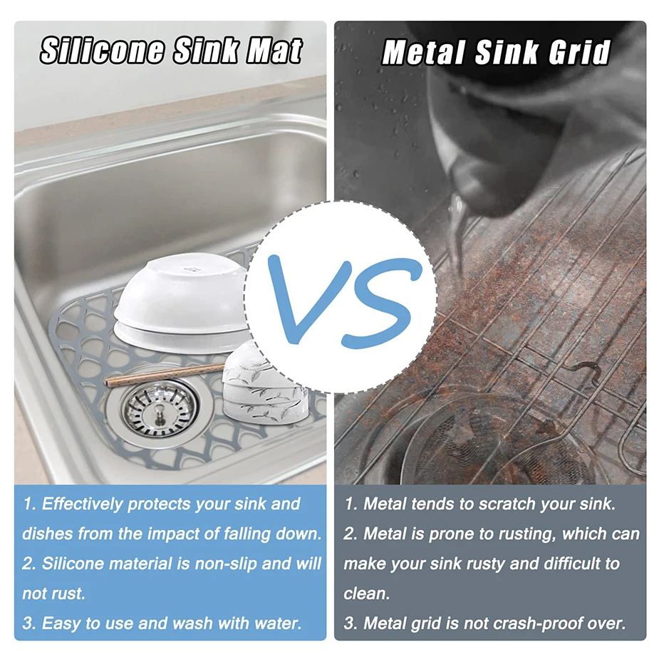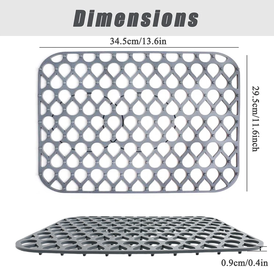 5. Приподнятые и твердые Нижние ножки-Большинство кухонных раковин не имеют ног под стиральной прокладкой внизу, но непосредственно помещаются на раковину, что занимает больше времени для слива. Наш коврик для раковины с твердой нескользящей подошвой, который может быть прочно прикреплен к раковине, и дренаж быстрее.