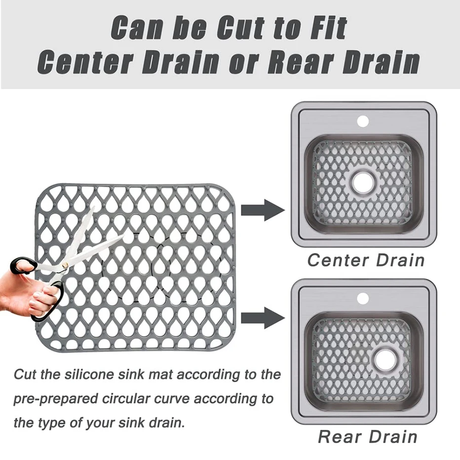 1. Новый дизайн-этот силиконовый коврик для кухонной раковины с двумя круглыми сливными отверстиями, который вы можете настроить, чтобы соответствовать различным типам раковин, как вам нравится. Конечно, коврик для раковины может использоваться как сушильная сетка, сушилка для посуды, сливная стойка, охлаждающая стойка и защита столешницы и т. д.