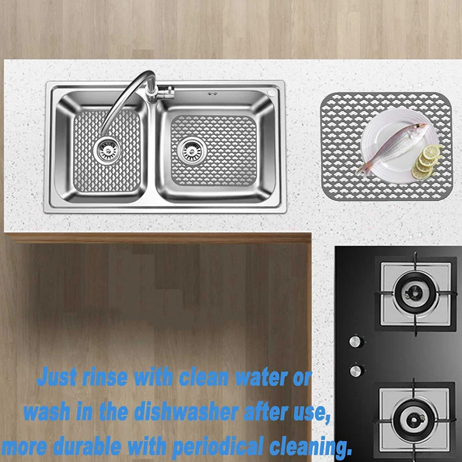 Серый нескользящий защитный коврик для раковины с сливным отверстием, кухонные коврики для раковины, сетчатый аксессуар для нижней части фарфоровой раковины из нержавеющей стали