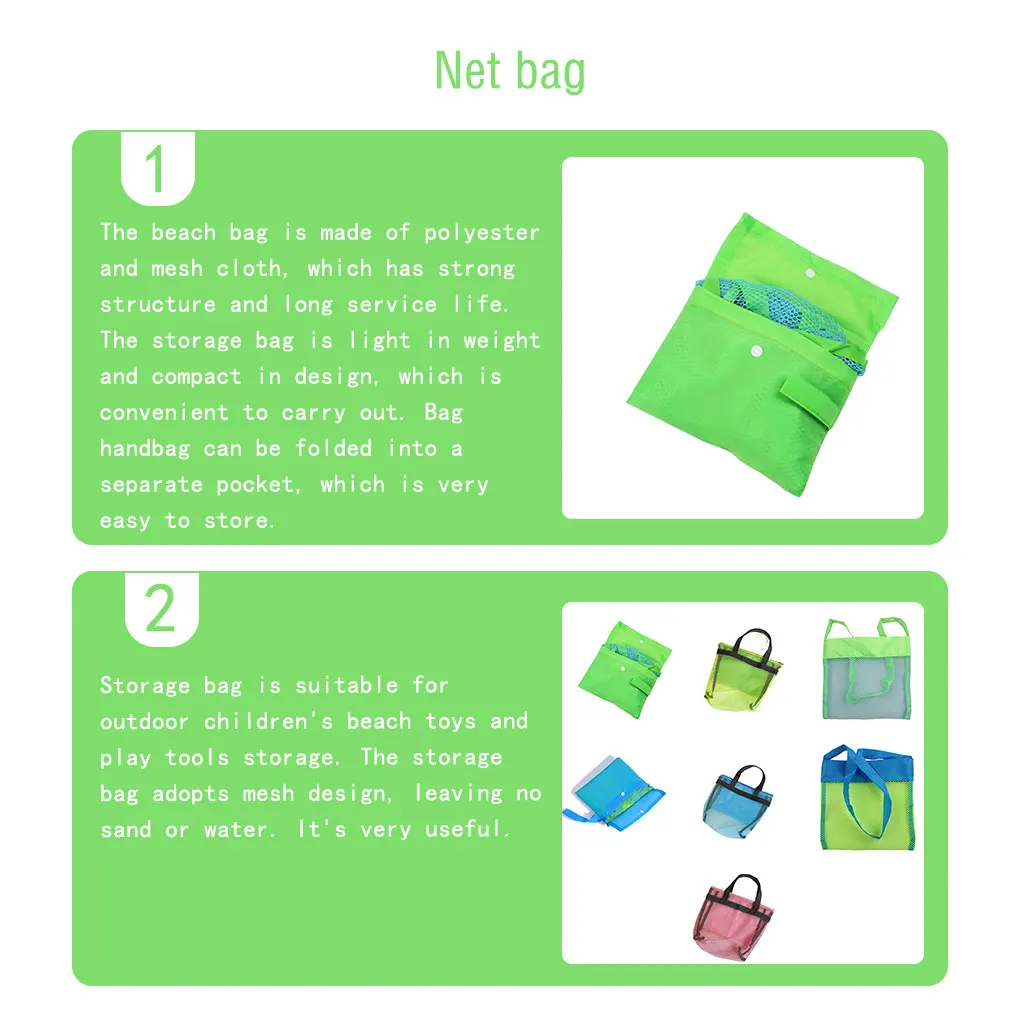 Сценарий применения: сетчатый мешок для хранения подходит для детских пляжных игрушек на открытом воздухе, игровой инструмент для хранения.