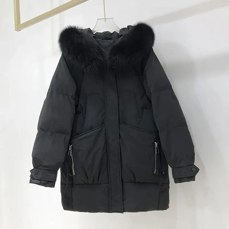 Отзывы о Женская зимняя куртка с капюшоном и воротником из искусственного меха - купить по