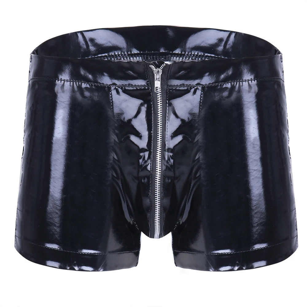 * Описание товара:? Мужские трусы-боксеры из ПВХ с эффектом мокрого вида, блестящие, на молнии, с мешочком, шорты, нижнее белье, клубная одежда
