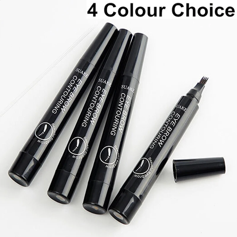 4 цвета, водонепроницаемый микро-карандаш для бровей, 4 головки, Тонкий усилитель, вилка, кончик, татуаж для бровей, оттенок, гель для бровей, инструменты для макияжа