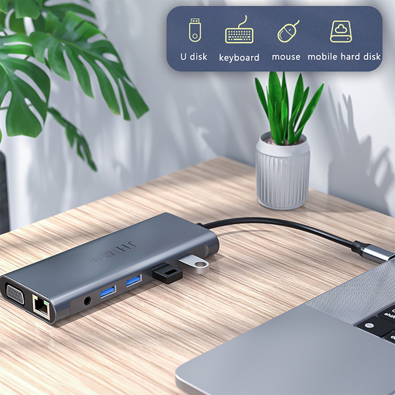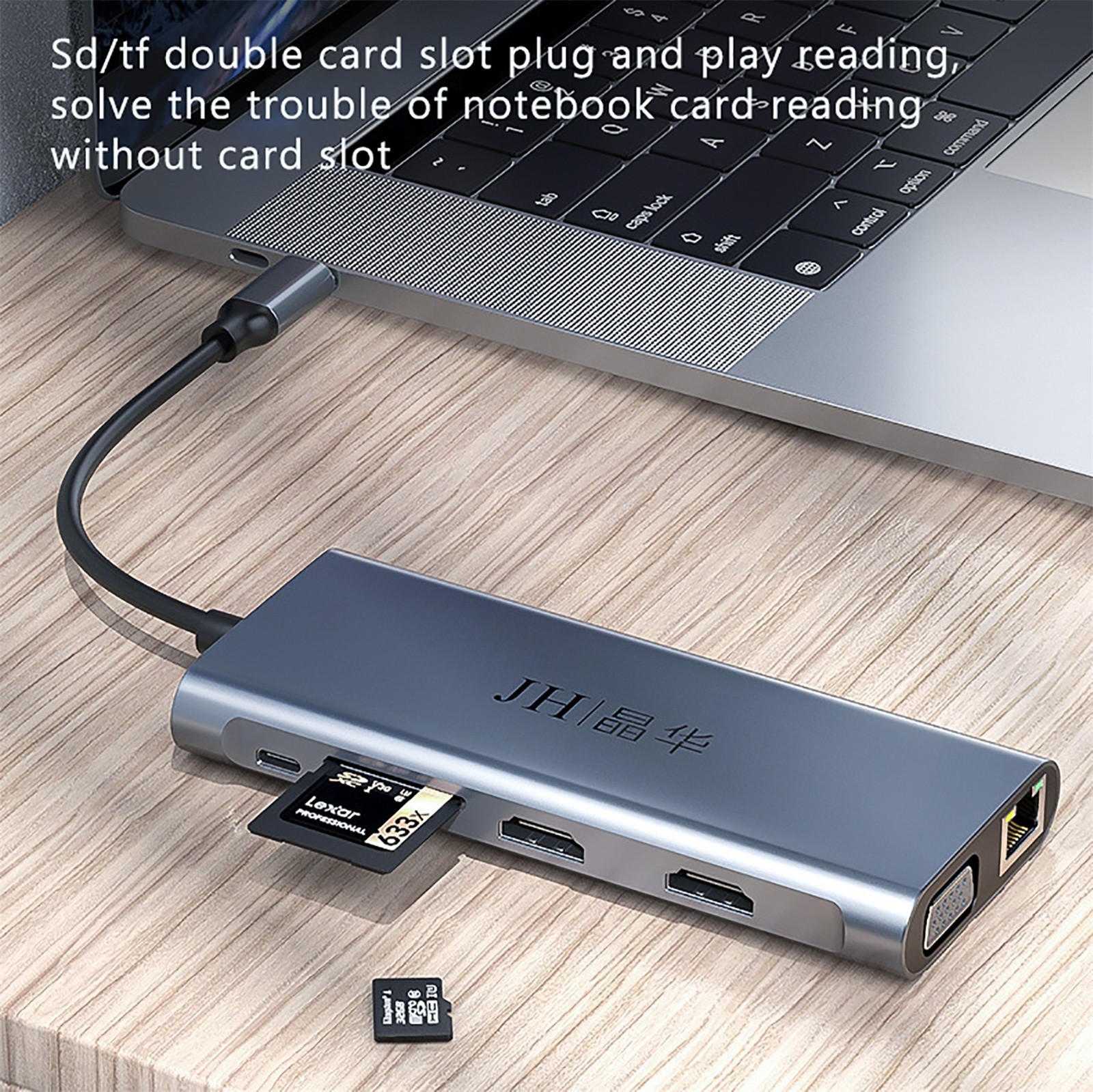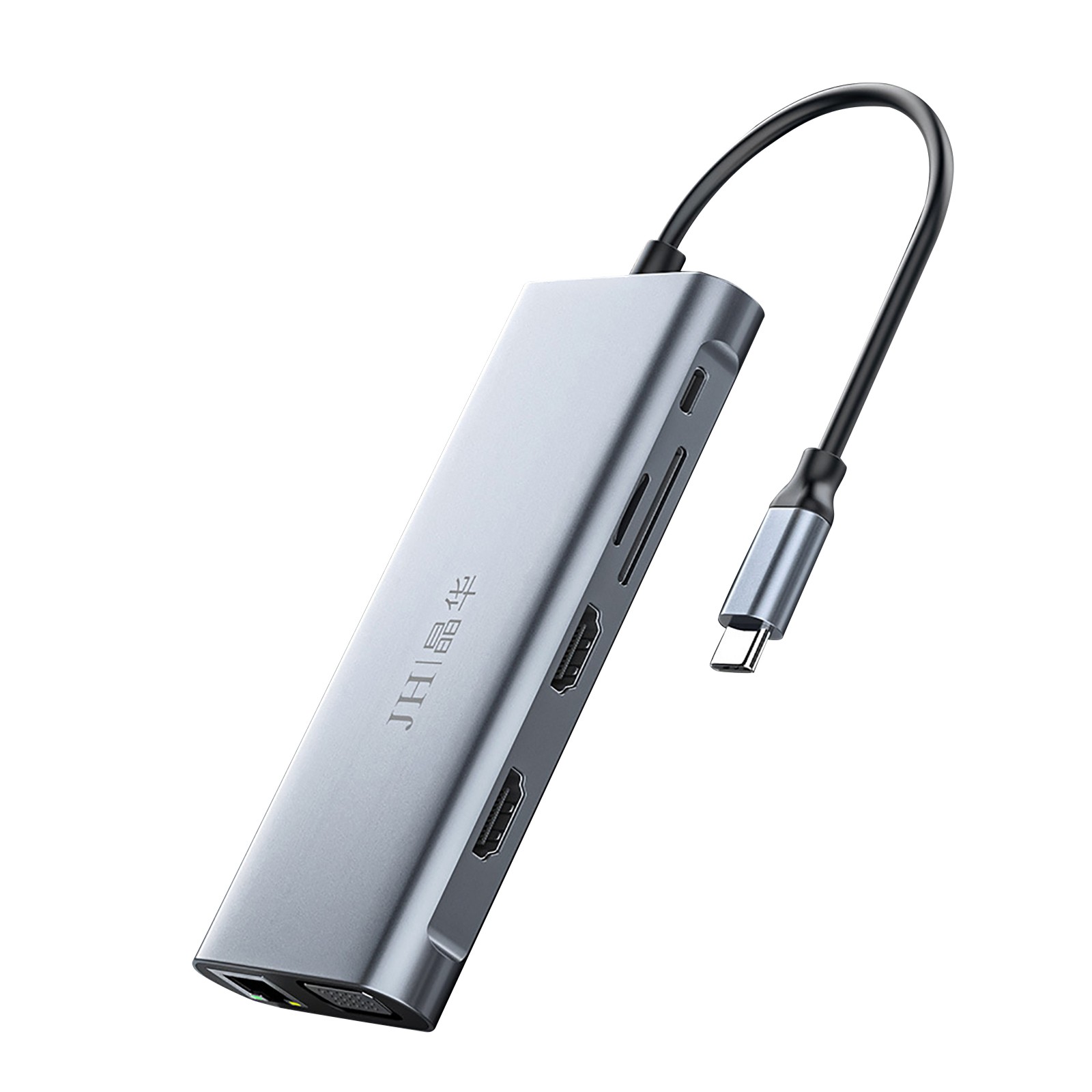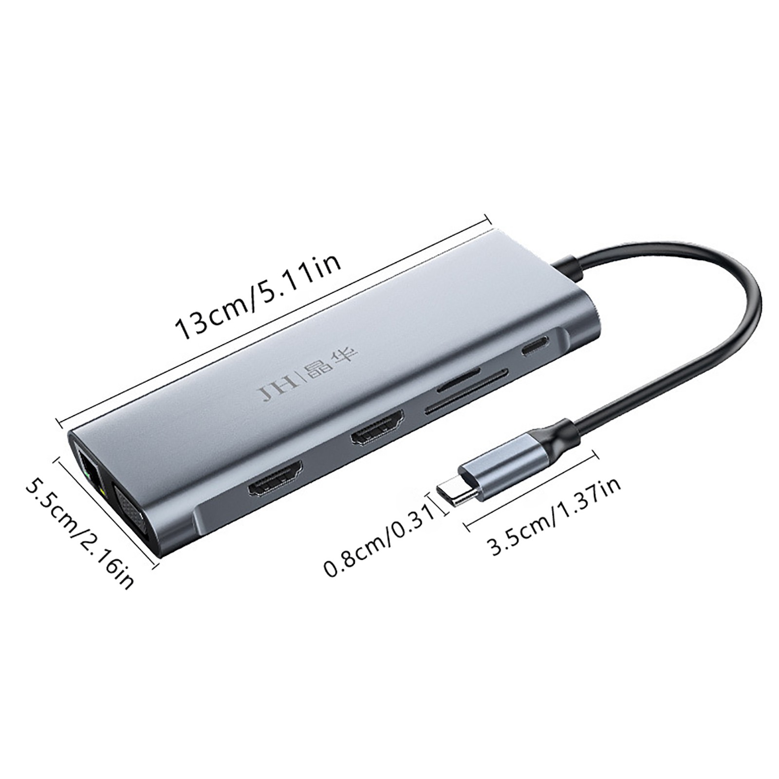 12 смарт-портов расширения: соответственно RJ-45 порт, C-type PD порт зарядки, 4 USB 3.0 портов, 2 4K Разрешение HDMI видео выход, VGA и Micro SD и TF кард-ридер (слот для sd-карт и слот для tf-карт можно использовать на концентраторе одновременно)