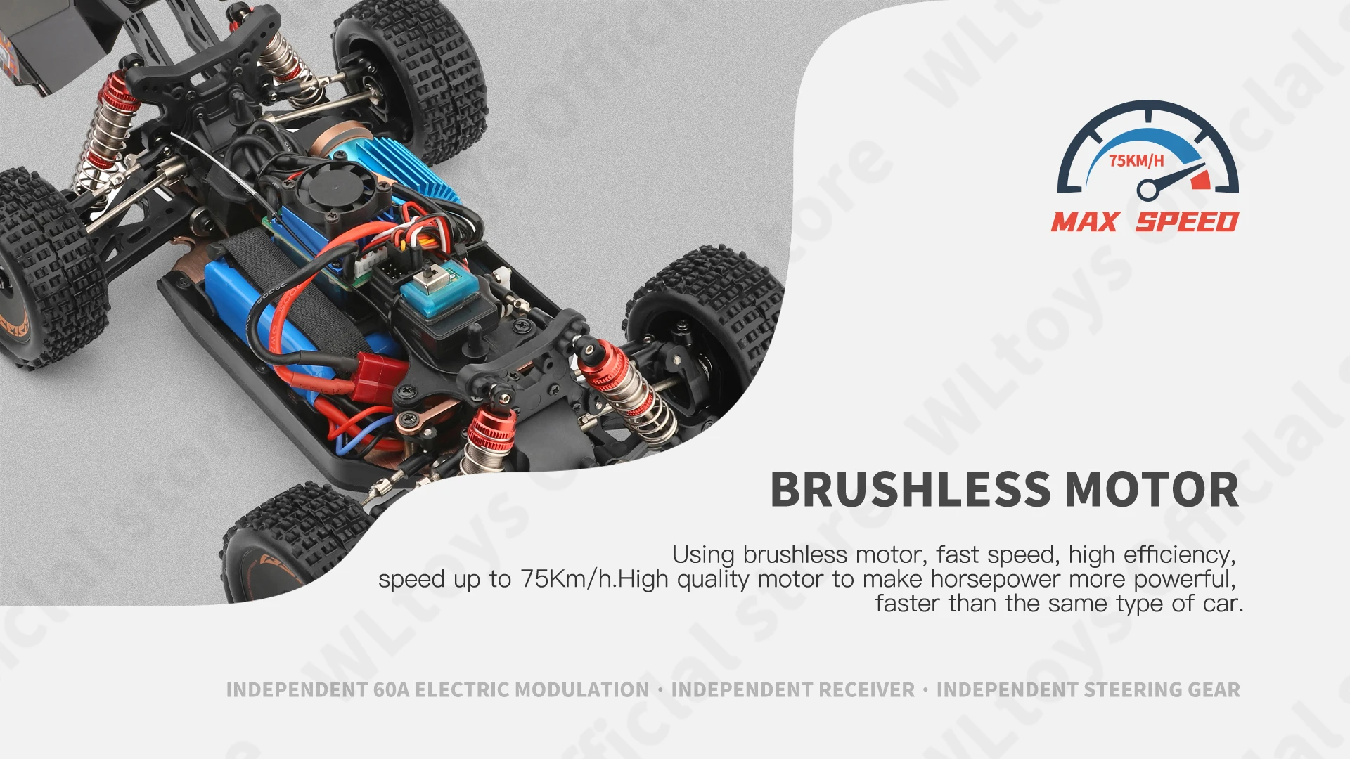 Бесщеточный двигатель, высокая скорость и эффективность. Аппаратные амортизаторы давления масла, амортизаторы могут адаптироваться к различным условиям. 2.4g высокоточная система дистанционного управления.