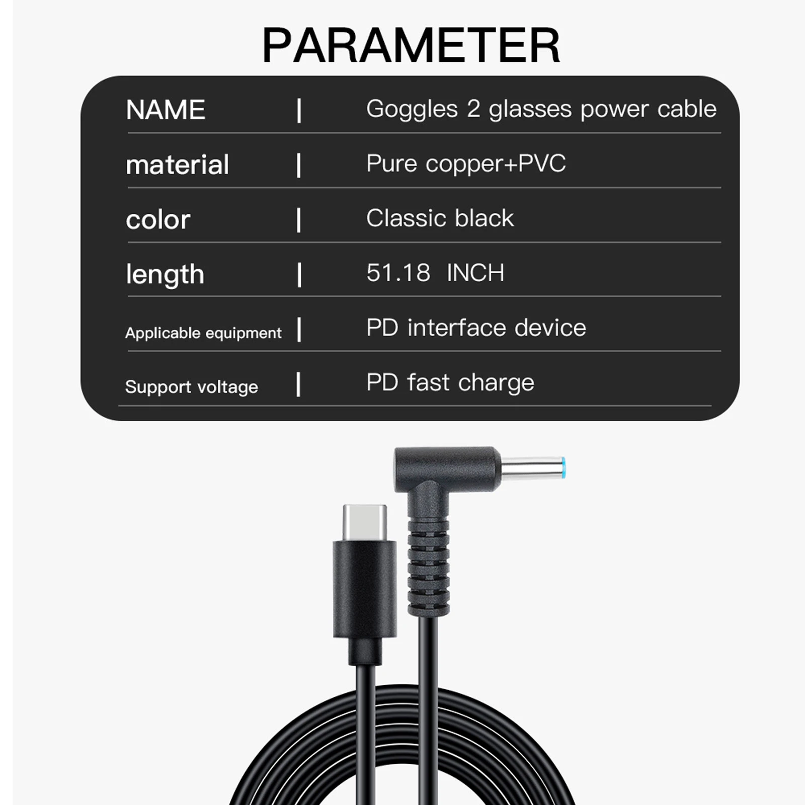 5. Непрерывный Источник питания: высококачественный медный сердечник, может стабильно и непрерывно питаться от Goggles2 очков. Может быть подключен к большему источнику питания или подключен к розетке, чтобы увеличить время использования.