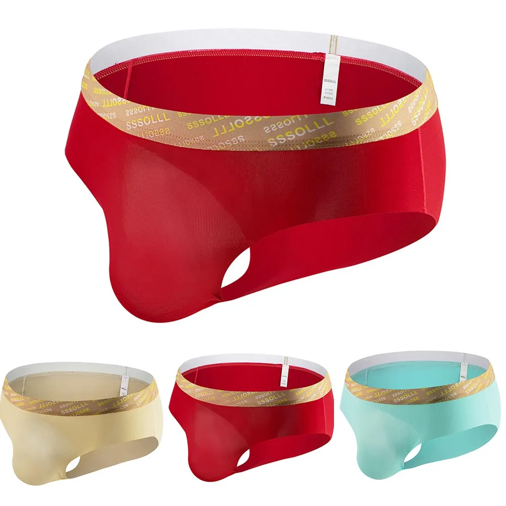 * Описание товара: для мужчин, сексуальные трусы, большой мешочек, шелковое нижнее белье, низкая талия, ультратонкие, трусики