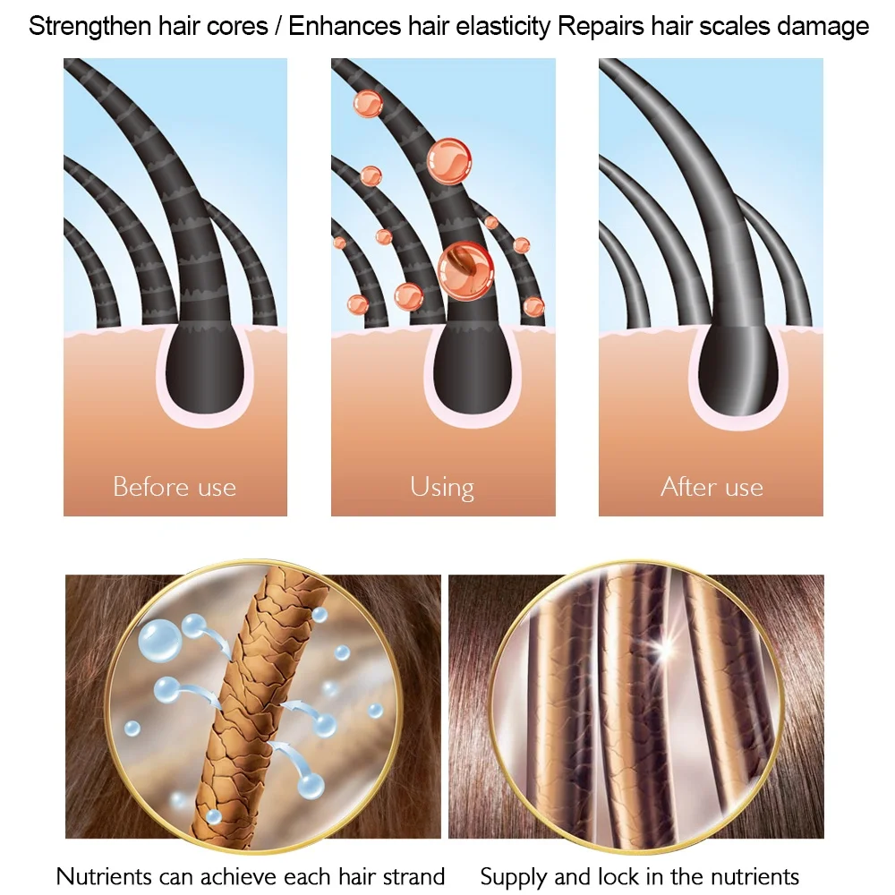 6. Эфирное масло для салона волос концентрируется на ремонте поврежденных кончиков волос, мгновенно разглаживая волосы. Для красивых волос и более здоровой кожи головы мягкий и светильник для ухода за поврежденными волосами, Придающий блеск и блеск.