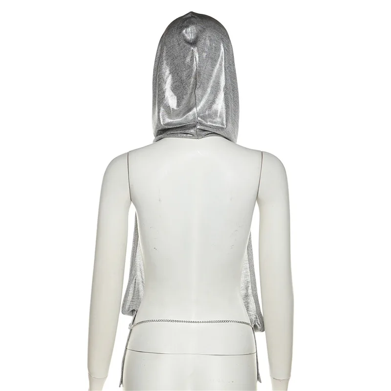 Отзывы о Сексуальные Серебристые шелковые майки с открытой спиной и капюшоном Женские