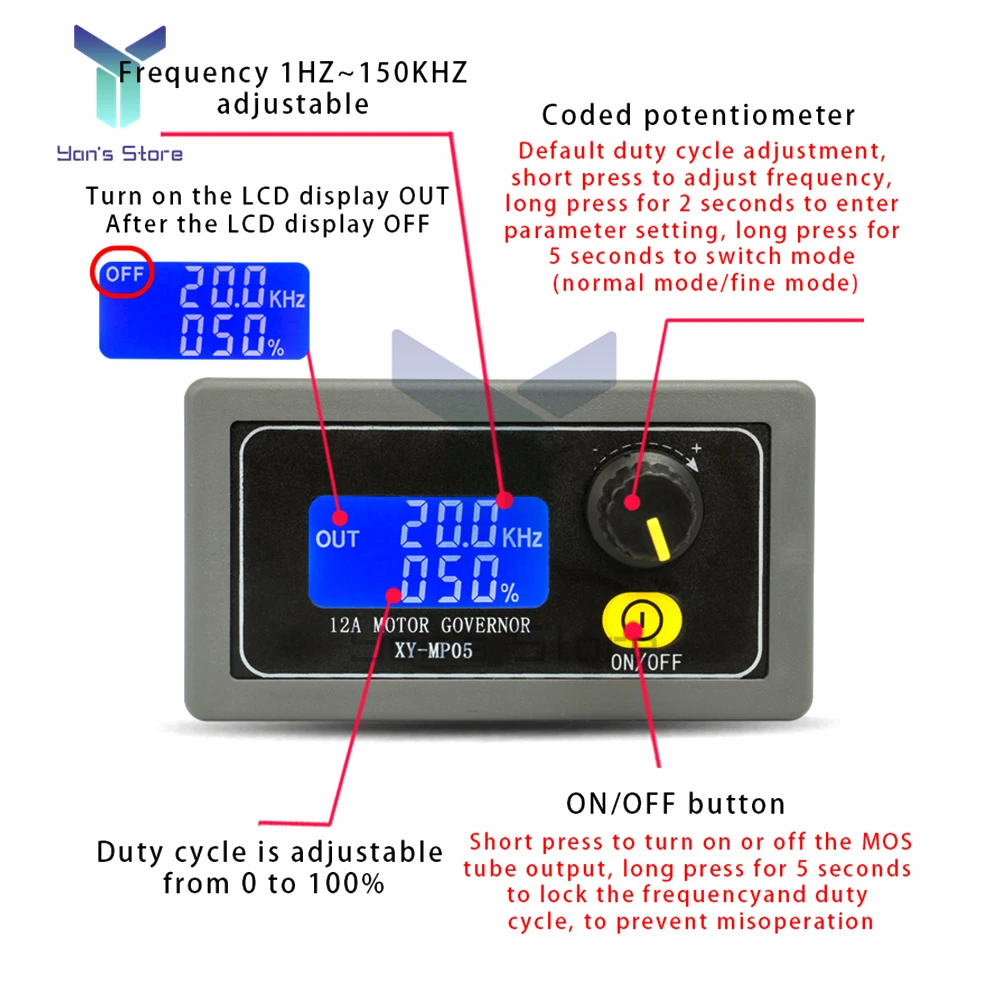 1. Частота и рабочий цикл жидкокристаллического дисплея, выключение и выход, четкие и четкие с первого взгляда!