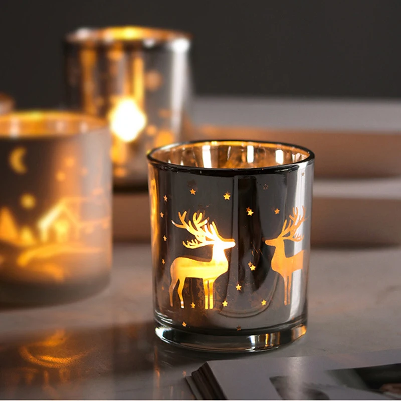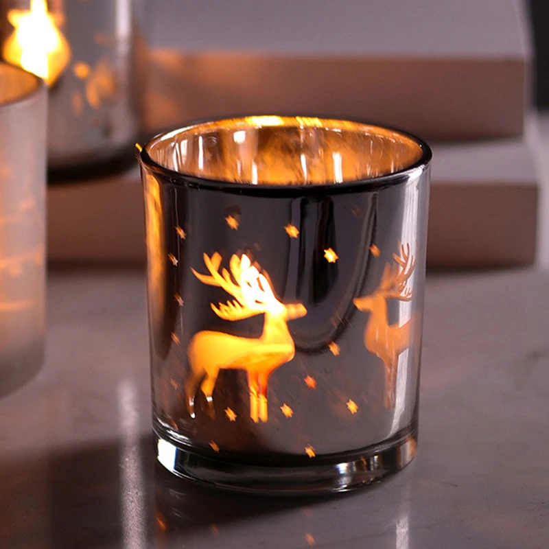 Серебряная ароматическая свеча контейнер ручной работы Свеча стеклянная Пустая банка Рождество олень шаблон светильник свеча чашка домашний декор