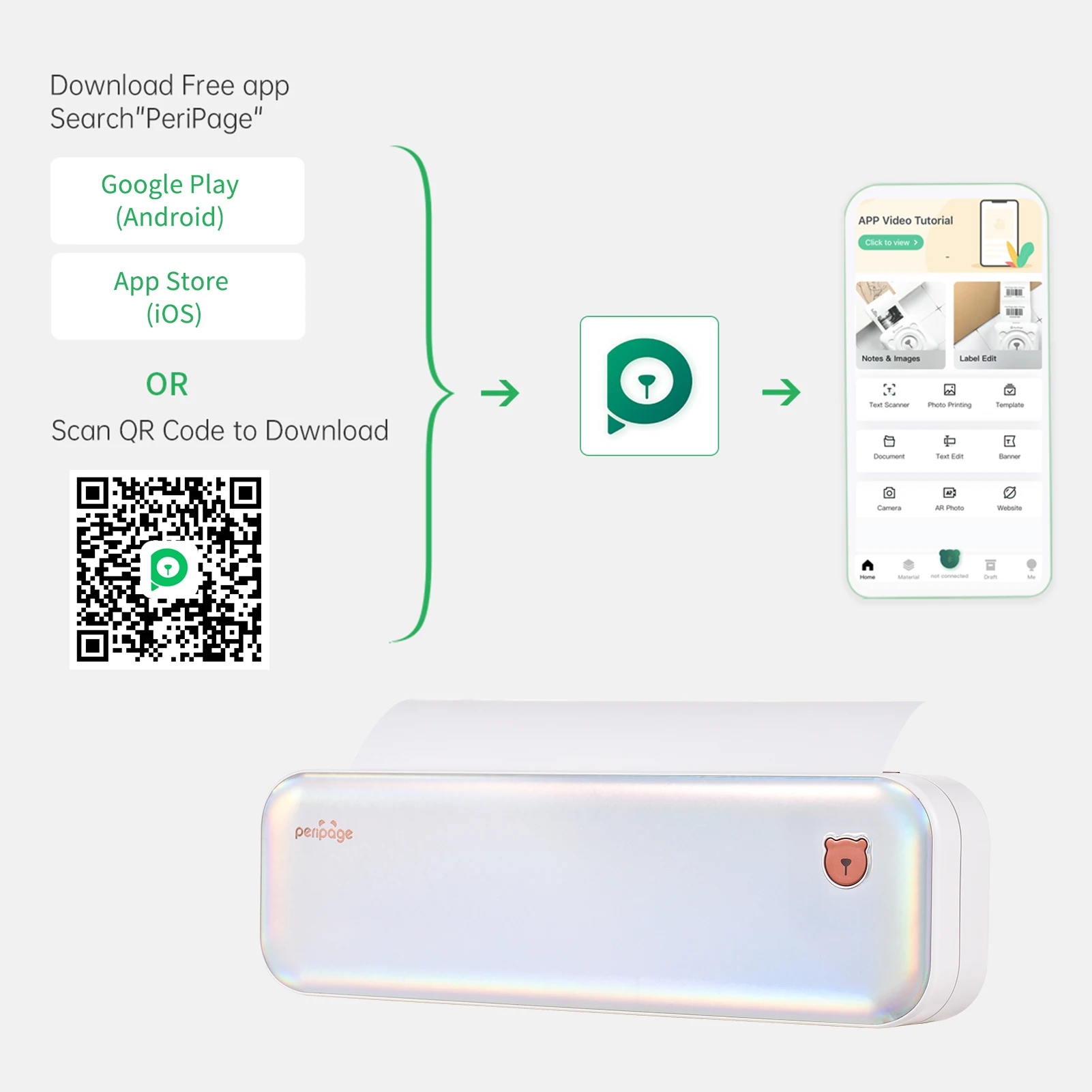 【Высокая Совместимость 】 Поддержка IOS и Android мобильный телефон с помощью подключения bt. Включите принтер, нажав кнопку питания в течение 2 секунд. Для мобильного устройства сначала загрузите приложение (PeriPage) и войдите в него и Подключитесь к машине через функцию BT. Если вам нужно распечатать с компьютером, сначала загрузите драйвер.(Драйвер на данный момент не поддерживает macOS)