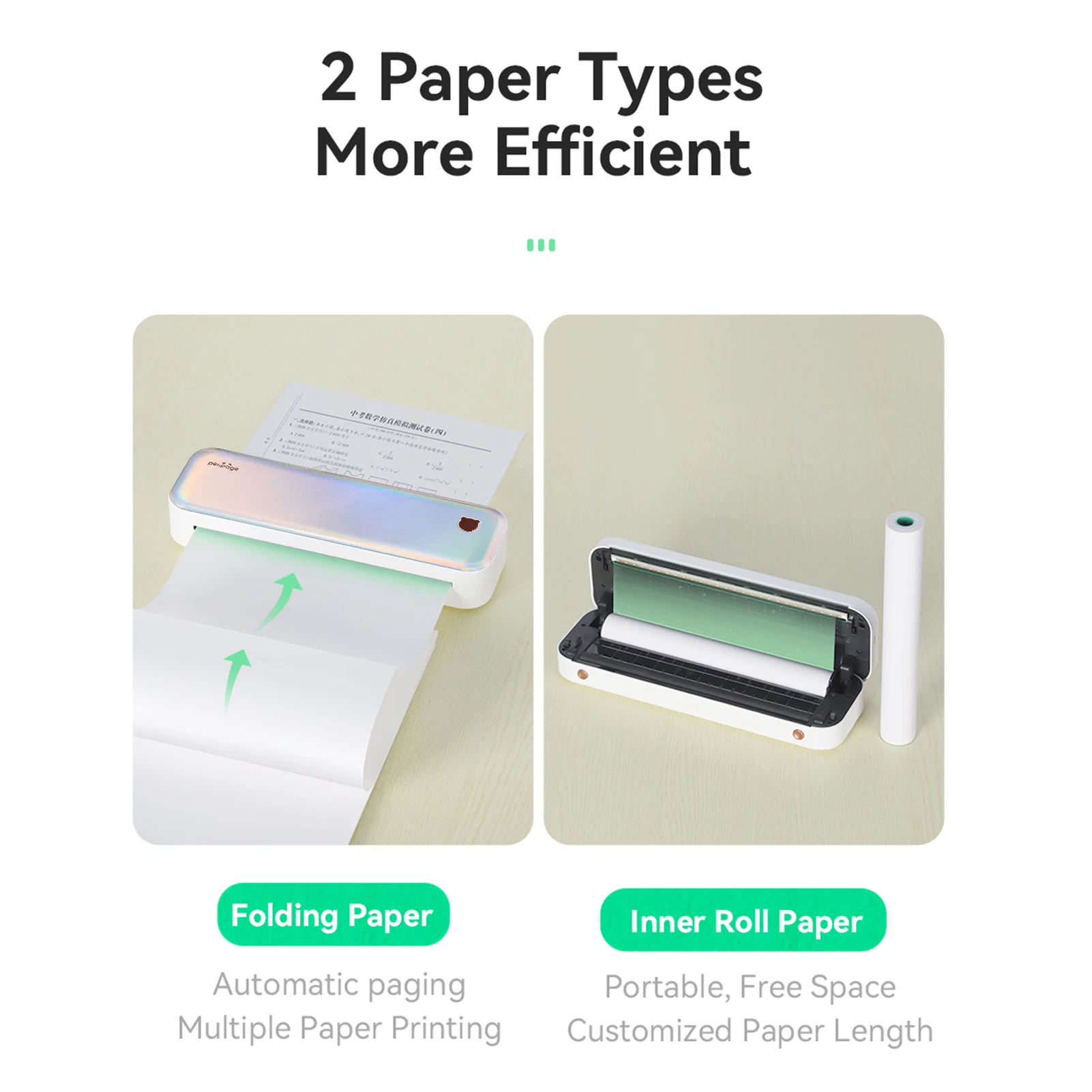 【Несколько размеров печати 】 с 2 зажимами для регулировки ширины бумажного слота, термопринтер A40 поддерживает 210 мм/107 мм/77 мм/56 мм (A4/4 "/3"/2 ") Ширина термобумаги сейчас, различные размеры бумаги для удовлетворения ваших потребностей в печати в нескольких случаях. И поддержка использования с рулонной бумагой и складной бумагой.