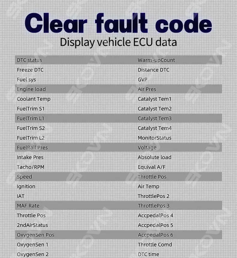 1. Двойная система OBD + GPS, может работать на всех автомобилях. Если протокол OBD2 не открыт, вы можете выбрать GPS рабочую систему, GPS совместим со всеми автомобилями