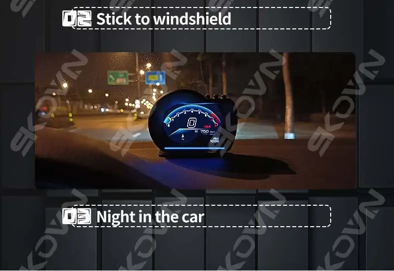7. Первый HUD показывает все данные двойного режима OBD + GPS, нет необходимости переключать рабочую систему, если протокол OBD2 совместим.
