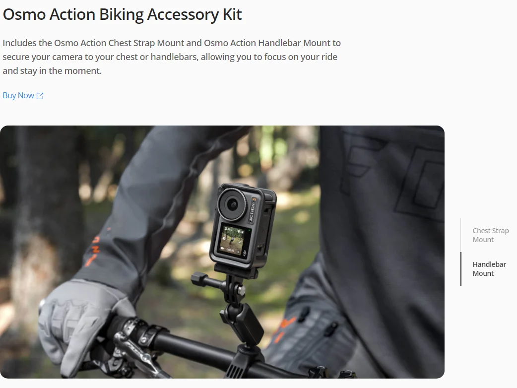 Включает в себя крепление на нагрудный ремень Osmo Action и крепление на руль Osmo для крепления камеры к груди или рулю, что позволяет вам фокусироваться на своей поездке и оставаться в данный момент.