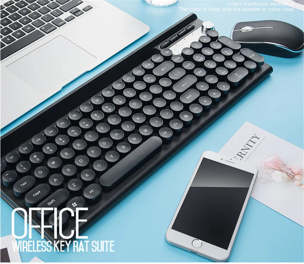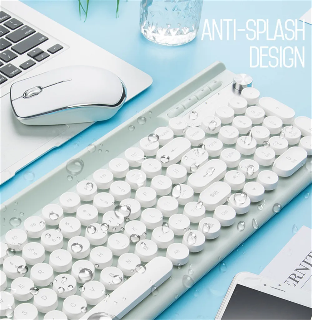 Клавиатура особенность: Ретро Круглый колпачки, водонепроницаемый дизайн, с функцией умного сна, мультимедийные клавиши, с держателем для мобильного телефона